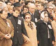 Meclis'e geç geldi Cenaze korteji, Bayındır Tıp Merkezi ile Meclis arasındaki yaklaşık 4 kilometrelik mesafeyi, 20 dakikalık gecikme ile 2 saatte alabildi. Meclis'teki törene, Türkeş'in eşi Seval Türkeş, büyük oğlu ve MHP Genel Başkan Yardımcısı Tuğrul Türkeş ile diğer çocukları katıldı. Tören alanına ilk gelen lider Mesut Yılmaz, son gelen lider ise Deniz Baykal oldu. Yılmaz'ı, Muhsin Yazıcıoğlu izledi ve iki lider yan yana durdular. DSP Genel Başkanı Ecevit ise tören başlayana kadar KKTC Başkanı Eroğlu ile sohbet etti. Meclis'teki törene Başbakan Erbakan ve Başbakan Yardımcısı Çiller de katıldı. Çiller, Türkeş Ailesi'ne başsağlığı diledikten sonra bir süre Türkeş'in yakınlarının arasında durdu, daha sonra Bakanlar Kurulu için ayrılan yere geçti. Törende Türkeş'in özgeçmişinin okunmasının ardından bir dakikalık saygı duruşunda bulunuldu. Dikmen nizamiyesinden Meclis'e getirilen Türkeş'in naaşı, Çankaya kapısından MHP Genel Merkezi'ne götürüldü. Türkeş'in naaşı cenaze arabasına konduktan sonra Çiller, Türkeş'in ailesine Çankaya kapısına kadar eşlik etti. |