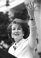 1996 seçimlerinde Demokrat Parti'den Clinton'ın en büyük rakibi olan Cumhuriyetçi Bob Dole'un eşi olan Elizabeth Dole, Cumhuriyetçi Parti'nin 2000 seçimlerinde ileri süreceği en kuvvetli aday. "Başkan olacak" iddialarını Bayan Dole yalanlasa da, Cumhuriyetçi Parti'nin önde gelenleri Bayan Dole'un fikrini değiştireceğine emin konuşuyor: Cumhuriyetçiler, ABD tarihine bir bayan başkan seçtirerek tarihe geçecek. Clinton'ın muhtemel adayı ise şu anki Başkan Yardımcısı Al Gore. (AP)