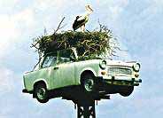 Demode bir tasarım ve eski teknolojiyle üretilen 'Trabant'ların üretimine iki Almanya'nın birleşmesinden sonra son verilmiş, ancak fiberglastan üretilen dolayısıyla çürümeyen Trabant' hurdalarının ne olacağı meselesi sorun olmuştu.Doğu Almanya'daki Neuruppin kentinde bir vatandaş bu soruna zekice bir çözüm bulmuş ve metal bir direğin tepesine yerleştirdiği Trabant'ı leylek yuvası haline getirmiş.