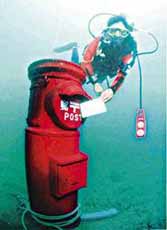 Fotoğraftaki balıkadam, suya dayanıklı bir kartpostalı, deniz dibine yerleştirilmiş 'antika' posta kutusuna atıyor. Yörede yaşayan dalgıçlar, bu gerçek mektup ve kartpostallarını festival süresince bu denizaltı posta kutusuna atacaklar. Posta idaresi de, balıkadam postacılar aracılığıyla, posta kutusunu her gün düzenli olarak boşaltıp, mektupları adreslerine ulaştıracak.