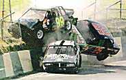 Dün Thunder Road yarış pistinde yaşanan ilginç kaza da büyük panik yarattı. Corey Pittsley'i geçmeye çalışan Mark Lanphear, hızla girdiği virajı alamadı ve Pittsley'i de sürükleyerek pist dışına çıkıp duvara çarptı. Birlikte sürüklenen iki araç, John Donahve'nin arabasının üzerine düştü. Üç yarışmacı da kazadan yara almadan kurtuldu.
