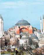 Dünya Anıt İzleme Komitesi'nin korunması gereken 100 anıt listesinde yer alan Ayasofya'da, daha önce yapılan yardımla dış yüzey ve kurşun örtüler değiştirilmişti. Ayasofya'da 1992'den beri süren restorasyon çalışmalarının yavaş gittiği eleştirilerine, Külkür Bakanı Talay (solda), "İğneyle kuyu kazmak gibi," cevabını veriyor.
