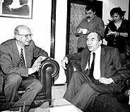 İNÖNÜ'DEN DESTEK- CHP'nin Onursal Genel Başkanı Erdal İnönü, CHP Genel Başkanı Altan Öymen'i parti Genel Merkezi'nde ziyaret ederek, "Sayın Öymen, onurlu, önemli ve güzel bir göreve seçilmiştir. Biz de kendisine uzaktan yardımcı olacağız" dedi. Öymen de ziyaretten duyduğu memnuniyeti dile getirerek, "Kendisinin desteğine her zaman ihtiyacımız var" dedi