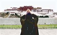 Tibetli bir keşiş, Lhasa'daki Potala Sarayı'nın önünde dua ediyor. Potala Sarayı, bir zamanlar Tibet hükümetinin resmi binasıydı, Dalai Lama'nın da meskeniydi.