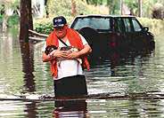 Salı günü yaklaşık 32 bin eve zarar veren sel, elektriklerin kesilmesine, yollardaki arabaların sürüklenmesine neden oldu. Çarşamba gününden itibaren yağışlar etkisini kaybetmeye başlayınca kurtarma ekipleri kolları sıvadı. Yolların çoğu ulaşıma açıldı, elektrikler geri geldi. Ancak köpeğiyle sular arasında dolaşan adam gibi pekçok Amerikalı evini geri alamadı.