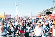 Batı ülkelerinden gelen destek sayesinde Tüpraş'taki yangın dün bir ölçüde kontrol altına alındı. Ancak Tüpraş'tan, cehennemden kaçış sürüyordu. Arabalı vapur, otobüs, otomobil... İnsanlar ne bulduysa atıyorlar kendilerini, üzerlerinde bir pantolon bir tişörtle. Büyük izdiham yaşandı kaçış sırasında. Kenti terketmeyenler ise, enkaza dönüşmüş dev apartmanların önünde yakınlarının sağ çıkmasını bekliyor, ellerini açmış dua ediyorlardı. Alev alev yanan Tüpraş'a hiç aldırmadan.
