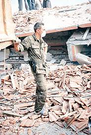 Plaj Yolu mahallesinden Melahat Abla, Hüseyin Amca, Ahmet Bey çaresiz beklemedeler... Yakınları hemen oracıkta, enkazın orta yerinde; ne yazık ki umutsuz bekleyiş.. "Dirisinden vazgeçtik, ölüsünü alamıyoruz!" diyor üçüncü kattaki Selami Usta..