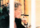 AMERİKA Başkanı Bill Clinton'ın gençliğinde marihuana içtiğini ancak içine çekmediğini açıklayarak geçtiğimiz Salı günü dikkatleri üzerine çeken Beyaz Saray sözcüsü Joe Lockhart, şimdi de "Clinton puro içmez ama tütün çiğner" dedi.