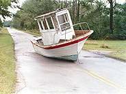 Bu manzaralardan en çarpıcı olanı hiç kuşkusuz Dennis'in alt üst ettiği North Carolina eyaletinde çekilen bu fotoğraf... Kabaran denizin kıyıya attığı bir tekneyi kapan sel suları, onu kıyıdan yüzlerce metre içeriye sürüklemiş. Fırtına dinip de sular çekilmeye başladığında ise tekne, bir caddenin ortasında işte böyle kalıvermiş. AP