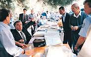 "Geçici" olarak "adliye" görevini üstlenen TZDK binasýnýn kapý önünde duruyorum. Bina, sessizliðe terk edilmiþ gibi... Adliye binalarýnda görmeye alýþageldiðimiz o insan kalabalýðý, yerini toza topraða bulanmýþ dosyalara býrakmýþ... Binlerce dosya... Bir kýsmý binanýn karþýsýnda, aðaçlarýn altýna kurulmuþ çadýrlarýn altýnda. "Bunlar" diyorlar "adliyenin arþivi"... Bir kýsmý rasgele odalara serpiþtirilmiþ...
