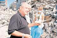 KÜÇÜK kızı Elif ve eşi Sabahat Hanım'ı kaybeden Sabahattin Topçu, diğer kızı Handan'la evlerinin enkazında mutlu günlerinden bir anı bulmaya çabalıyordu. Sabahat Hanım ve Elif'in cesetlerinin enkazdan çıkarılışına tanık olan acılı baba kız, buldukları her parçayla birşeyler hatırlatıyor, gözyaşlarına boğuluyordu.