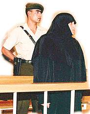 Metin Kaplan'ın vaazlarının yer aldığı kaset ve afişlerle yakalanan Hanife Seven, kara çarşafıyla katıldığı DGM'deki duruşmada tüm suçlamaları reddetti