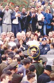 Ahmet Taner Kışlalı'yı profesörler cüppeleriyle askerler, yağmura rağmen üzerini kapamadıkları üniformaları ile uğurladılar. İlk kez asker, bir 'sivil'in cenazesine böyle büyük bir katılım gösterdi ve ilk kez asker, bir cenazede alkış tuttu. Törende ağlayan askerler de vardı.