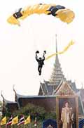Bangkok kentindeki Wat Phra Keau Tapınağı'nın önündeki meydana inen 572 paraşütçü, böylece bugüne kadar yapılan en kalabalık serbest atlayışı gerçekleştirmiş oldu. Binlerce Taylandlı'nın izlediği müthiş atlayışın en ilginç yönlerinden biri ise Amerika Birleşik Devletleri Genel Kurmay Başkanı Hugh Shelton'ın da 572 paraşütçü arasında yer almasıydı.