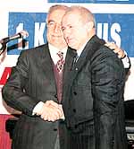 Yargıtay Başsavcısı Savaş ile eski Anayasa Mahkemesi Başkanı Özden, bir gazetenin ödül töreninde, En İyi Hukukçu ve En Demokrat ödüllerini birbirlerine sundu