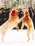 Köpek Dövüşleri Kulübü, her hafta düzenlediği maçlarda her türden köpeği "kapıştırıyor". Maçlardan birinden alınan bu fotoğrafta, Asya çoban köpeği ve Kafkas çoban köpeği, ölümüne dövüşüyor. Maçın akıbeti, köpeklerden biri pes edince ya da dövüşemeyecek duruma gelince belli olacak. İnsan ve Hayvan Hakları Dernekleri'nin ve çevreci örgütlerin bu tip köpek dövüşlerine karşı Batılı ülkelerde protestoları artarken, Orta Asya ülkelerinde, özellikle de Kazakistan'da artan tek şey seyirci sayısı ile ilgi oluyor.