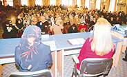 Çiğ köfte ve pastaların dağıtıldığı toplantıda bayanların çocuklarını panele getirmeleri dikkat çekti. Programın başlamasıyla birlikte İstiklal Marşı okumak için ayağa davet edilen topluluk, Fazilet Partisi'nin seçim müziğinin çalmaya başlamasıyla şaşkınlık geçirdi. Konuklar daha sonra İstiklal Marşı'nı kendileri okudu.