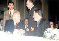 Cumhurbaşkanı Demirel ile Kemal Sunal Yavuz Donat'ın oğlu Tufan Donat ile Ebru Çetinyurt'un düğününde nikah şahitleri olarak aynı masaya oturdular