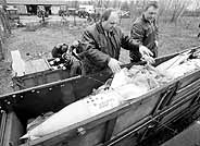 Ukrayna'nın başkenti Kiev yakınlarında bir fabrikanın çöplüğünde, onlarca füze ve askeri silah bulundu.
