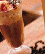 1 fincan ekspressoya, 3 çorba kaşığı süt, 2 çorba kaşığı kahve şurubu, 2 top çikolatalı dondurma, 3 kaşık esmer şeker, ve 2 adet buz ekleyip blendırdan geçirin. Bir top dondurmayla birlikte soğuk olarak servis yapın.