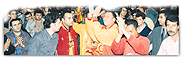 - Pasaport kontrolünden geçen yolculara da sarı-kırmızı karanfiller dağıtıldı.