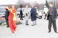 Aynı dakikalarda Galatasaraylı takım menejerleri, otelin bahçesinde kısa bir yürüyüş yaptı. Bazı İngiliz futbol fanatikleri, menejerleri futbolcu sanıp kendilerinden imza aldılar.