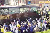 Yorkshire polisinin yoğun güvenlik önlemlerine rağmen, holiganlar dün yine ortalığı karıştırmaya çalışıp içinde basın mensuplarının ve Futbol Federasyonu yöneticilerinin bulunduğu otobüsü taşladılar.