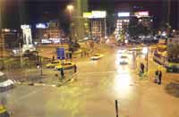 Taksim dün akşam tarihi gecelerinden birini daha yaşadı. Leeds maçının başlamasına saatler kala insanlar Cim-Bom'un maçını izlemek için kendilerine yer aramaya başlamışlardı. Taksim'deki barlar, sinemalar, kahveler hatta küçük restoranlar da bile bu maç için dev ekran hazırlanmıştı. Özellikle sinemaların önünde uzun kuyruklar oluşmuştu. Pek çoğu da daha maça 2 saat kala dolmuştu. Normal bir akşamda iğne atsan yere düşmeyecek İstiklal Caddesi, ıssızlaşmış, büyük bir sessizliğe bürünmüştü. Taksim Meydanı'nda ise tek tük araç geçiyordu.