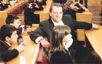 Yılmaz Meclis'teki kabulde bir öğrencinin "Siz ne zaman Cumhurbaşkanı olacaksınız?" sorusuna, "40 yaşını doldurduğum zaman" yanıtını verdi. Yılmaz, kabul sırasında çocuklara, "Beni tanıyor musunuz?" sorusu yöneltti. Çocukların tamamının, "Evet" yanıtını vermesi üzerine Yılmaz "Peki Erkan Mumcu'yu tanıyor musunuz?" diye sordu. Çocuklardan ses çıkmaması üzerine Yılmaz, "Bak Erkan Bey, seni çocuklar tanımıyor" dedi. Yılmaz, Mumcu'yu, turizm konusunda bilgi vermek üzere kürsüye davet etti.