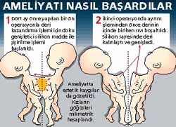 Yapışık ikizlerin ayrılma işlemi yapılmadan 4 ay kadar önce doku genişletici (tissue expander) silikon şeklindeki maddenin vücutlarına konularak ameliyata hazırlandığını söyleyen Prof.Dr. Daver Yeker, Türkiye'de yaklaşık 15 yıldır kullanılan doku genişletici (tissue expander) işlemde haftada iki gün iğnelerle dokunun şişirildiğini anlattı. Doku genişletme işini başarılı bir şekilde gerçekleştiren Plastik Cerrah Prof.Dr. Oğuz Çetinkale, "Ayrılma işlemi yapılınca, yüzeyleri boş kalıyor. Derisi olmayan bir yüzey ortaya çıkıyor. Bu bir çeşit deri kazandırma işlemi. 4 ay önce başladığımız bu şişirilme işleminde, ilk önce haftada 2 kere serum takviyesi yaptık, daha sonra bebeklerde bir gerginlik oldu, bire indirdik. Sonra açığı kapatmak için sayıyı 3'e çıkardık. Son 10 günde her gün verdik. Sonra da işlemi gerçekleştirdik. Ameliyattan hemen önce sıvıyı boşalttık. Silikon sayesinde deri kalınlaştı ve derinin büyük oranda yettiğini gördük" dedi.