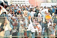 Milli Takımın yenilmesine kızan taraftar Devlet Başkanı aleyhine slogan attı. Polis seyirciye göz yaşartıcı bomba atınca 13 kişi öldü