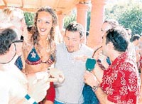 Son günlerin flaş ismi ünlü futbolcu Sergen Yalçın, Bodrum Dodo Beach'te gösteri yapan üç Rus dansçı kızın yanından bir an olsun bile ayrılmıyor. Geçtiğimiz günlerde barda 15 yaşında bir kızla yakalanınca olay çıkartan ve bir gazetecinin boğazını sıkan futbolcu, bu kez çok sakin görüntü çizdi.