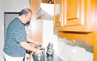 Ailesini tatile gönderen Mustafa Taşar, komşuların pişirdiği yemekleri yiyip, bilgisayarla vakit geçiriyor