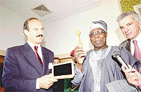 İstanbul Büyükşehir Belediye Başkanı Ali Müfit Gürtuna, The Marmara Oteli'nde düzenlenen Dış Ekonomik İlişkiler Kurulu (DEİK) toplantısından sonra Obasanjo'ya "fahri hemşirelik beratı" ile İstanbul'un armasını taşıyan lale biçimindeki altın anahtarı sundu. Obasanjo dün ülkesine döndü.