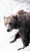 Kimi zaman bir minik dere havuzcuğunda, kimi zaman bir ayının pençe ve dişlerinde, bazen de kel kartalın pençelerinde ya da martıların gagalarında can veriyorlar. 'Grizzly'ler için telaşla sıçraya sıçraya nehrin dar yatağında yol alan binlerce somonu avlamak adeta armut piş ağzıma düş demekten farksız. Brooks Camp'te şelaleler ve Naknek gölüne dökülen dereler boyunca yaptığımız yolculuklarda onlarca ayının bu çok kolay avına tanık oluyoruz. 'Grizzly'ler yaz aylarına denk gelen bu göçün takvimini o kadar benimsemişler ki yazın canlı yakalayıp kış için yüksek enerjili yağ halinde depoladıkları somon balıklarını sonbaharda da yumurtalarını bıraktıktan sonra ölmüş halde küçük dere havuzlarından toplamaktalar. Katmai'deki dört günümüz yine güzel bir havada 'grizzly'lerin ve kel kartalların benzersiz somon balığı avını izleyerek geçiyor.