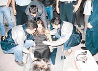 Paniğe kapılan gençler kendilerini dışarı atmak için kapıya yönelince büyük bir izdiham yaşandı. Feryatlar içinde caddeye fırlayan İlknur İleri adlı bir genç kız, kendini yoldan geçen bir otomobilin altında buldu. Genç kız hastaneye kaldırılırken, polis bombayı atan sorumsuzu arıyor.
