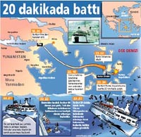 1912 yılındaki Titanic faciasına çok benzer bir kaza önceki gece Ege sularında yaşandı. Yunan adaları arasında sefer yapan 511 kişilik feribot kayalıklara çarparak battı