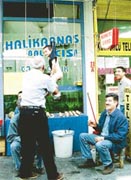 Ofis Gevran Caddesi'ndeki Halikarnas Balıkçısı'nın sahibi Şener Esmer, dükkanının önünde otururken kendisine çiklet satmaya çalışan ısrarlı satıcıyı önce azarladı. Çiklet satmak için ısrarını sürdüren küçük çocuk, bir anda kendisini büyük balıkların asıldığı kancaya asılmış buldu.