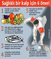 Uzmanlar, kalorisi yüksek olduğu halde besin değeri düşük gıdalardan kesinlikle uzak durulmasını, günde en fazla 300 miligram tuz tüketilmesini hatta kalp hastalarının en fazla 200 miligram tuz tüketmesini söylüyor. Özellikle ton ve somon balığı yemek, kalbe yararlı Omega-3 tipi yağ içermesi açısından önemli. Çörek, kraker, kızarmış besinlerdense uzak durulması gerekiyor.