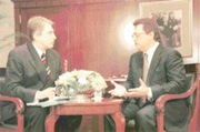 Başbakan Yardımcısı Mesut Yılmaz, önceki gün döşenmesini denetlediği Avrupa Birliği Genel Sekreterliği'ndeki çalışma odasına dün ilk kez yerleşti. Artık hükümet çalışmalarının çoğunu Başbakanlık binasındaki makam odasından değil, AB Genel Sekreterliği'nin Eskişehir yolunda, Milli Güvenlik Kurulu Genel Sekreterliği'ne komşu binasından yürütecek. Dün atv'de yayınlanmaya başlayan "Avrupa'ya Doğru" dizi programının ilk bölümü için bu binadaki odasında yaptığımız söyleşide Yılmaz, bir süredir neredeyse bütün yoğunluğunu verdiği Türkiye-AB uyumu konusunda bir dizi saptamada bulundu.