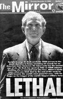 Bush'un başkanlığıyla İngiltere'nin Avrupa'daki önemini yitireceğini savunan Mirror, dünkü baskısının ilk 7 sayfasını "ölüm makinesi" olarak nitelendirdiği Bush'a ayırdı. Teksas valiliği sırasında idam edilen 147 kişinin fotoğraflarını basan gazete, "Bush idam kararı verirken en fazla 4 dakika düşünür" yorumunu yaptı. "Savaş ilanı, bir yerin bombalanması gibi konularda da düşünmeden karar veren Bush gibi bir adamı ister miyiz?" diye soran gazete yönetimi, "Hayır. Bush, bütünüyle tehlikeli, Beyaz Saray'ın yakınına bile yaklaştırılmaması gereken rahatsız edici biri" diye tavrını belirledi.
