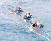 Körfezin Gelibolu Yarımadası'nda bulunan Kabatepe limanına sabah saat sekizde varıyoruz... Dalış teknesi bizi bekliyor; havanın yağmurlu, denizin de dalgalı olması yüzünden kimsenin gelmeyeceğini düşünürken arabalar peş peşe limana gelmeye başlıyor. Herkes yerleşince tekne açılıyor.