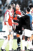 Futbol sahalarının gollerden çok tartışılan konusu şiddet, ilk kez mahkemeye yansıdı. Avrupa futbolunun tanınmış iki futbolcusu, "ırçılık" suçlamaları nedeniyle mahkemelik oldu. Söz konusu iki futbolcu, İtalya'nın ünlü Lazio takımında top koşturan Yugoslav Sinisa Mihajloviç ile İngiltere'nin Arsenal takımının siyahi oyuncusu Patrick Vieira. Olay, geçen Ekim'deki Şampiyonlar Ligi maçında yaşandı.