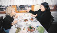İtiraf etmeliyim ki şimdiye kadar en leziz geçen yemekli sohbet buydu. Nedeni, Meral Okay'ın ağzının tadını iyi bilmesi. Öyle "Yok kilo alırım, yok diyetteyim" diyenlerden değil. Her şey usulüne göre... "Önce fındık lahmacun getirin, sonra bir içli köfte, dolma, üstüne de Ali Nazik getirin. Bir de gavur dağı lütfen." Okay, bu yemekleri art arda sıralarken ben şaşkın şaşkın bakıyorum. Bana dönüp "En iyi Ali Nazik Develi'de yapılır. Parmaklarını yiyeceksin" diyor. Hadi hayırlısı. Bakalım masadan kalkabilecek miyiz?