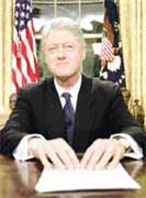 Ülkesine altın çağ yaşattığı Amerika başkanlığını bugün Bush'a devredecek olan Clinton, Amerikan halkına televizyondan yaptığı 7 dakikalık konuşmayla veda etti