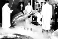 5-Vücut ısısı Ğ40 dereceye düştüğünde, ceset dibinde sıvı nitrojen olan çelik bir tanka yerleştiriliyor. Her gün bir miktar aşağı indirilerek 1 haftanın sonunda tamamen sıvı nitrojene batırılıyor. Bu işlem tamamlandığında cesedin vücut ısısı Ğ196 dereceye düşüyor.