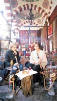 Bilirsiniz usuldendir; Sultanahmet'e gidince köfte yemeden dönmek olmaz. Fakat Mansur havanın bahar gibi olduğunu düşünüp, "Köfteyi boşver, hadi simit peynir yiyelim" dedi. Yanına da çay. Bundan iyisi Şam'da kayısı... Sohbetimiz böyle tatlı bir ortamda başladı.