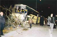 Kazaya neden olan viski şişesi ile bir nescafe kavanozu ve yolcuların çantaları şiddetli çarpma sonucunda yola fırladı. Adeta bir ibret tablosu olarak göze çarpan viski şişesinin yakınındaki nescafe ile çantaların bir kısmı kaşla göz arasında kayboldu. Muhabirimiz üstteki fotoğrafı çektikten daha sonra durumu farkedip "kaza yağması"nı alttaki fotoğraf ile böyle tespit etti. Şoför Hilmi Özcan gözaltına alındı.