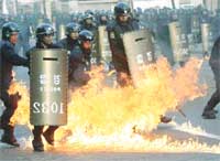 Güney Kore'de Daewoo otomobil fabrikasından işten çıkartılanlarla polis arasındaki çatışmalar 1 haftadır sürüyor.