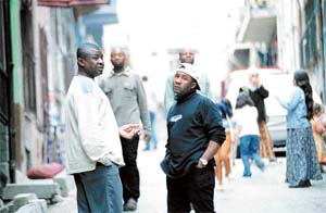 Amerikan filmlerinden aşina olduğumuz sahnelerden biridir: Zenci mahallesinde her köşede bir grup durur. Mahalleye biri girer, arkadaşlarıyla tokalaşır ve "How ya doin' maan" diye sorar... İşte Taksim'in arka sokaklarına, Tarlabaşı'na giderseniz kendinizi bu film karelerinden birinde bulacaksınız. Belki de "Şu an herhalde rüya görüyorum, Harlem'deyim" diyeceksiniz. Tarlabaşı'nda bu kadar yoğun bir Afrikalı nüfusuyla karşılaşacağımızı bilmiyorduk. Oysa daha sokağa girmeden birkaçıyla karşılaştık. Devam ettiğimizde üç dördünün bir köşede sohbet ettiğini gördük. Derken bakkaldan ve diğer apartmanlardan üçer beşer çıktılar. Kızlı erkekli gruplar, onlarcası sokaklarda dolaşıyor, balkonlarından dışarı bakıyorlar. Meğer burada yüzlerce Afrikalı yaşıyormuş.
